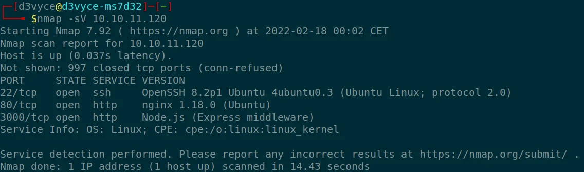 nmap -sV 10.10.11.120