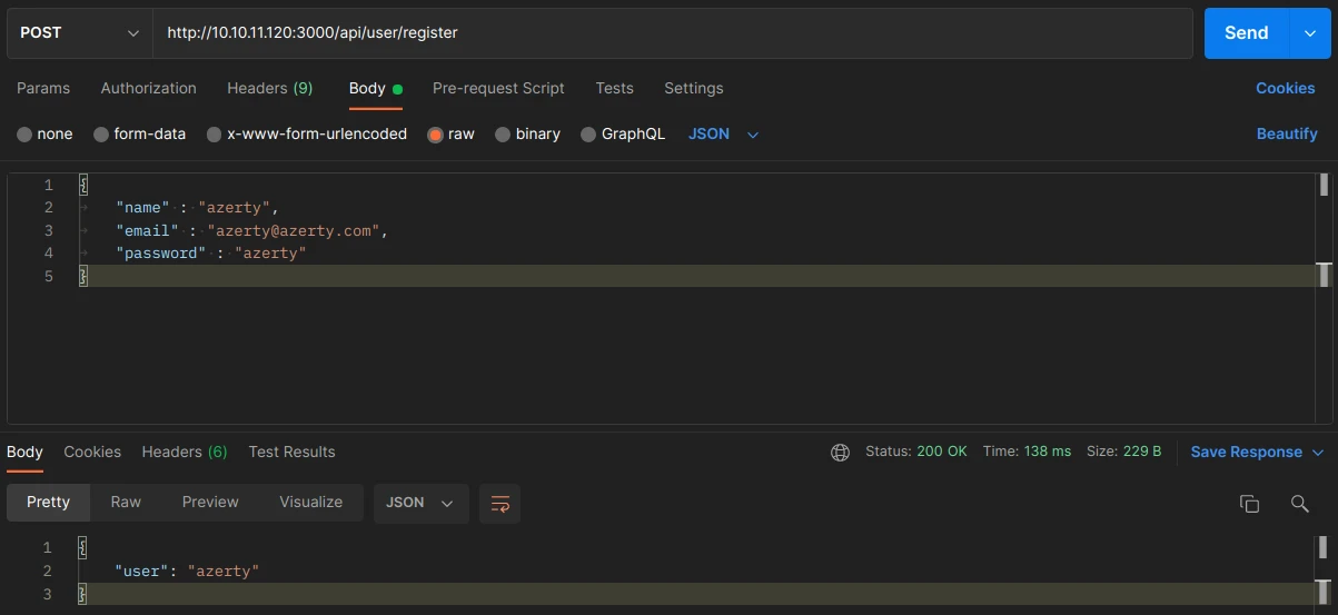 First, I will try to understand how the API works with the documentation. With the help of Postman software, I will create POST/GET requests to interact with the API. Let's create an account: