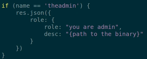 The API returns that we are a normal user. In the documentation we notice that the admin nickname is "theadmin", which is confirmed in the source code. The user with this nickname will have admin access.