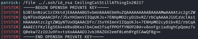 Let's try to read a root file with the command /file and with the password found previously. I test with the file id_rsa of the user root.