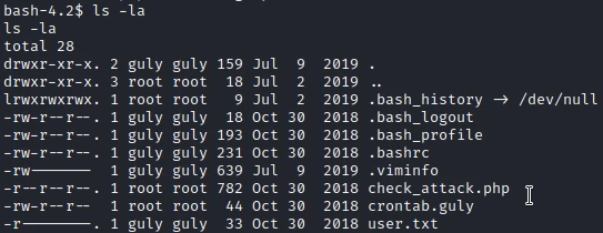 I now have a reverse shell as apache. But I don't have the access to see the first flag. In the user's home folder, I notice 2 interesting files: