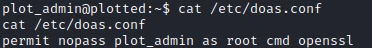 I found a command not very common: doas. This command is an alternative to the sudo command. After some research I find on this site that the config file of this command is at the following address: /etc/doas.conf.