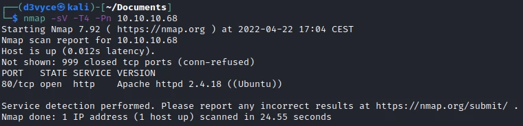 - 80/tcp : HTTP web server (Apache 2.4.18)