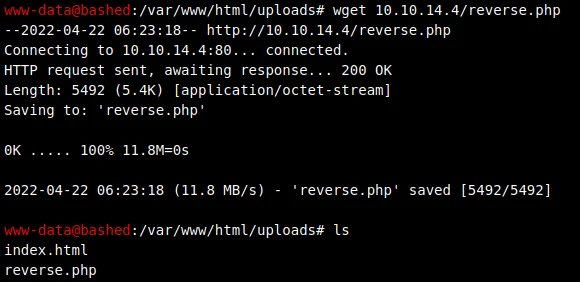 Although functional, the cmd in the browser remains limited. So I upload a PHP reverse shell in the html/uploads folder.