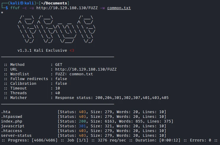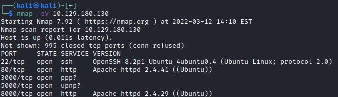 nmap -sV -sC -O -T4 -n -Pn -oA fastscan 10.129.180.130
