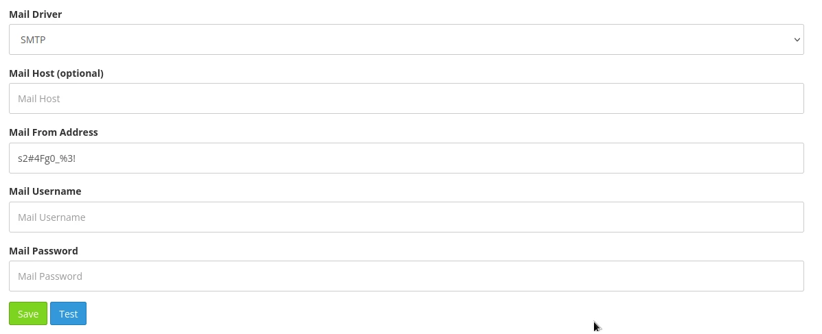 I find that the panel is version 2.4.0 of Cachet. After some research I find the CVE-2021-39174 which allows to obtain the contents of the variable DB_username and DB_password. For that I go in the notification parameters I set Mail Driver to SMTP. Then I fill Mail From Address with the following content: ${DB_username}. I save and I refresh the page.