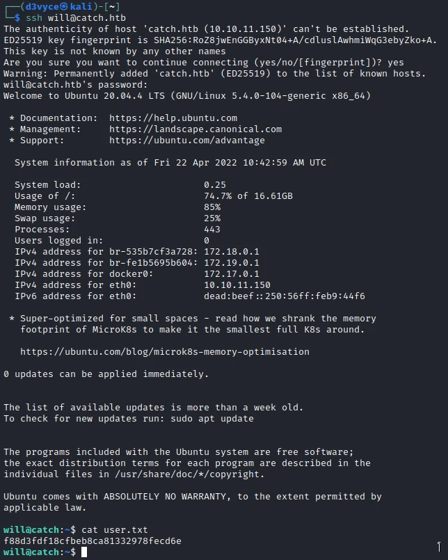 I now have SSH access with the user will and I can get the first flag.