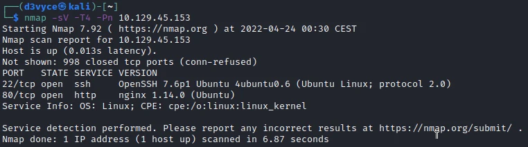 - 80/tcp : HTTP web server (nginx 1.14.0)