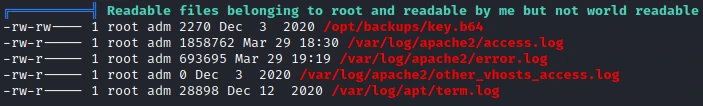 I first use linPeas to try to find a way to do an elevation of privilege. After a few minutes of analysis of the result of the command. I find a strange file belonging to the root user but readable by my user :