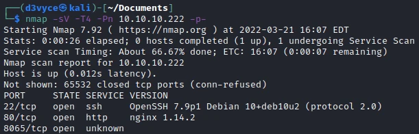 First, let's start with a scan of our target with the following command: