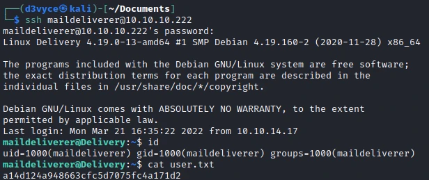 Ok I now have a shell in maildeliverer time and I can get the first flag.