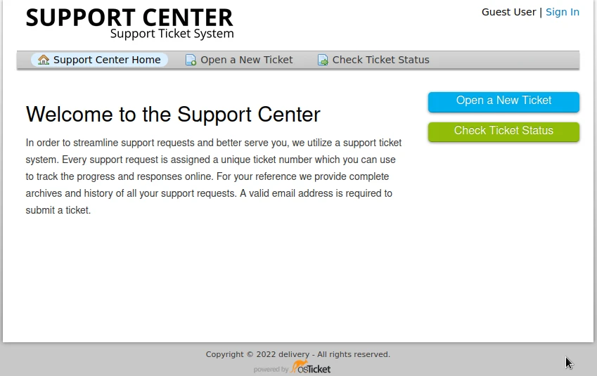 I try to create an account, but the site asks me to validate the account via email. I first try to use a temporary email, but I get no confirmation. Then I notice that when I create a helpdesk ticket, it is indicated that I can send emails to the address 3998604@delivery.htb to add additional information to the ticket. So I use this address when creating the account and when validating I go back to the ticket site and find the following message: