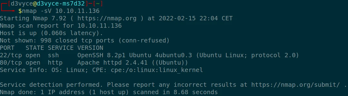 nmap -sV 10.10.11.136