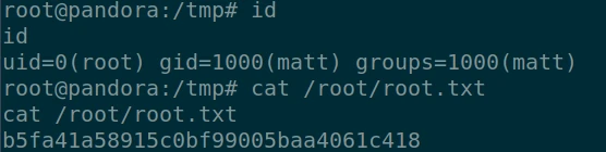 I will now be able to use the sudo command, but I don't have matt's password, I have to find another lever to get root. A second command that seemed interesting was: "pandora_backup". Indeed a custom script and therefore with potential flaws. After downloading it locally, I extract the strings to try to see if I can recover some information from the :