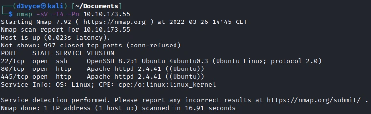 nmap -sV -T4 -Pn 10.10.173.55