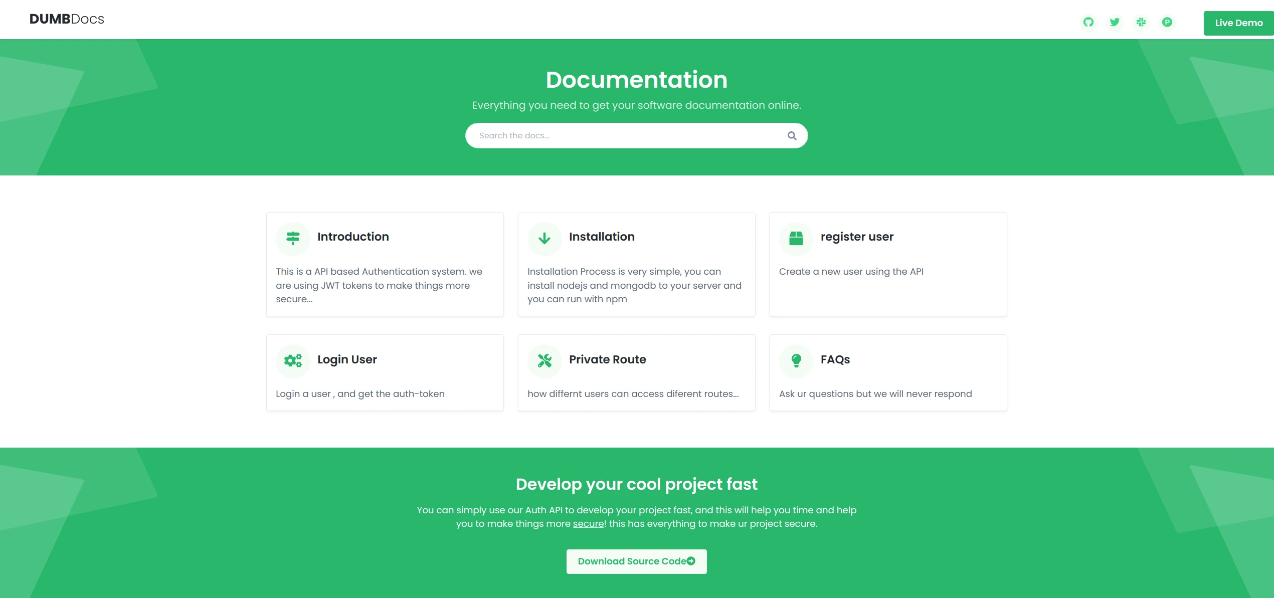 We can see several things: already there is an API with documentation, so potentially an attack vector. But we also have the source code of the site/API, which could be used to find vulnerabilities.