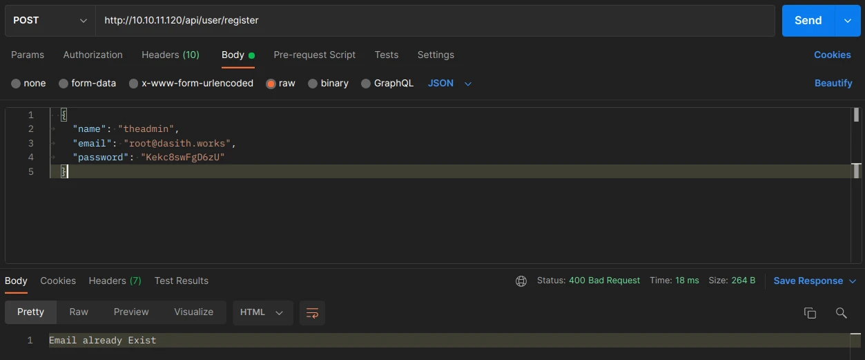 First, I will try to understand how the API works with the documentation. With the help of Postman software, I will create POST/GET requests to interact with the API. Let's create an account:
