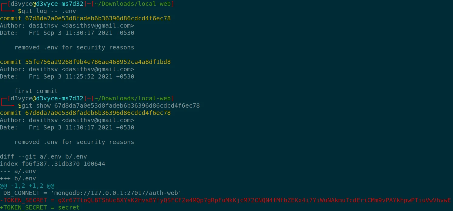 I quickly realize that there are two commits on the .env file, in the first commit there is another TOKEN :