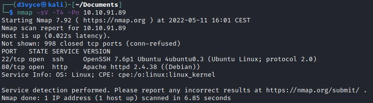 First, let's start with a scan of our target with the following command: